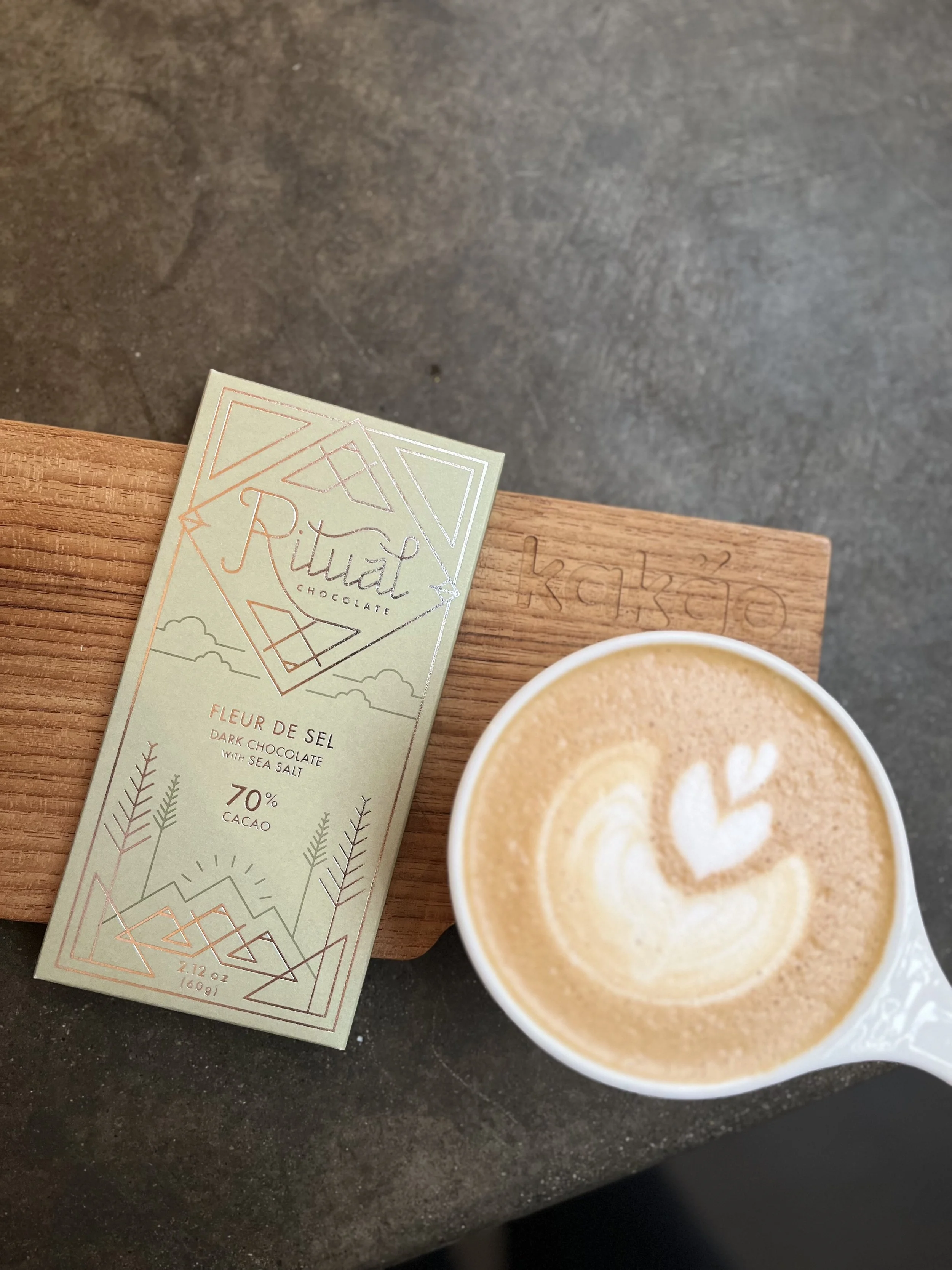 Kakao Store › Ritual Fleur De Sel Image 1 of 1 Ritual Fleur De Sel $9.00 70% cacao. Tasting Notes: Strawberry, Fudge & Sea Salt Quantity: Add To Cart Added! 70% cacao. Tasting Notes: Strawberry, Fudge & Sea Salt